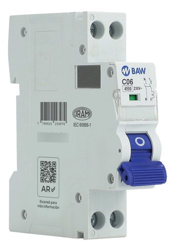 Interruptor Automático Bipolar 1 Módulo 20a Baw Curva C 230v Compacto