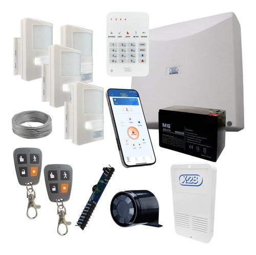 Kit Alarma Inalambrica X28 4 Zonas Completo Blanco