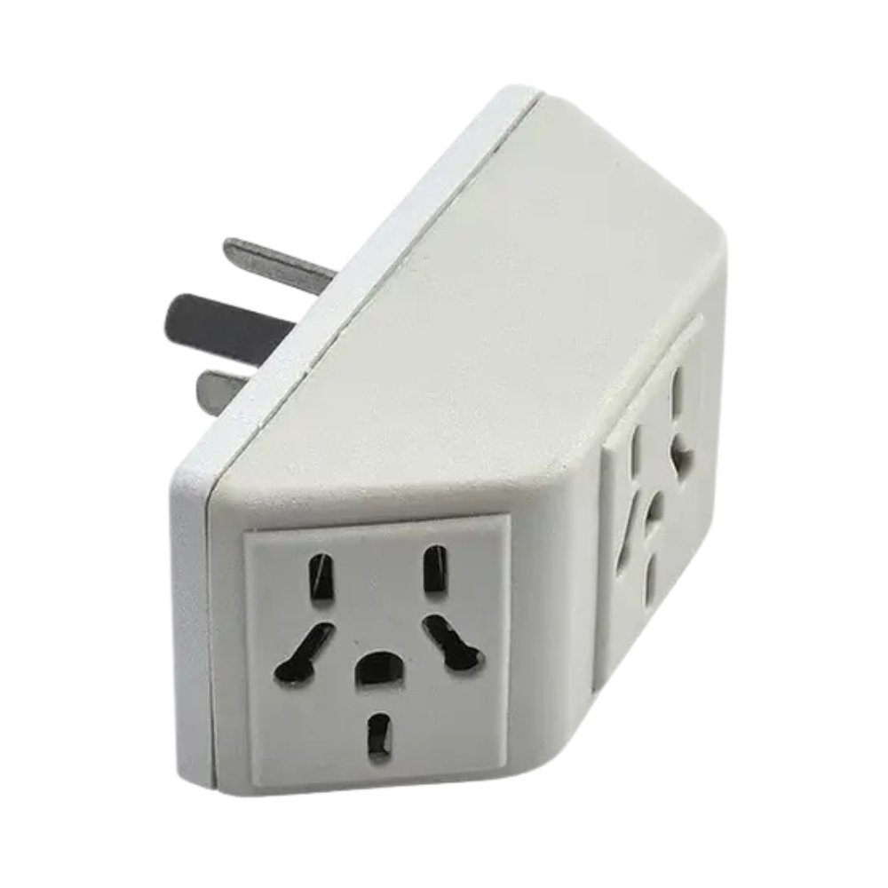 Adaptador electrico triple tipo trapezoidal ideal para conectar varios dispositivos en un mismo tomacorriente de forma practica y economica.