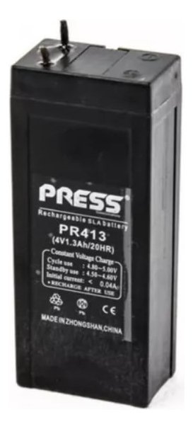 Bateria de Gel recargable 1.3 ampers, 4 Volts Marca PRESS
