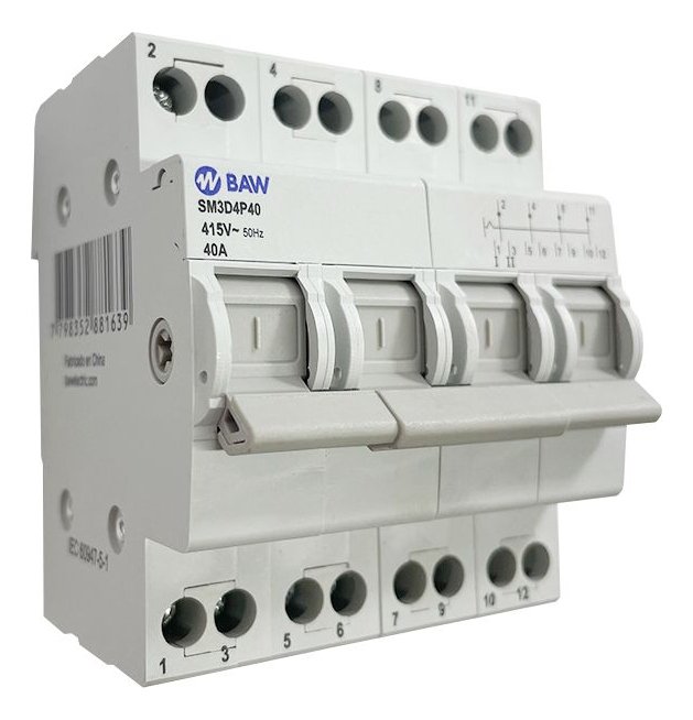 CONMUTADORA MANUAL TETRAPOLAR I-0-II. 40A. 400Vca.