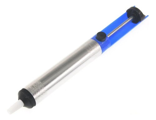 Desoldador manual metálico tipo pistón, ideal para remover estaño en trabajos de electrónica y reparación. Su diseño reforzado brinda mayor durabilidad y potencia de succión.