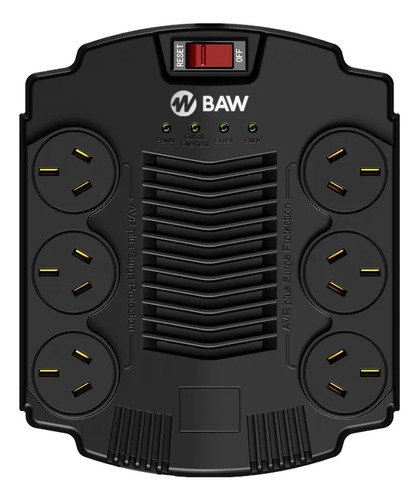 Estabilizador De Tensión 600w 6 Tomas Baw Negro