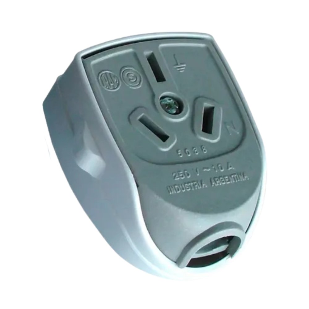 Ficha Hembra 10A Premium 2 Patas + Tierra Blanco/Gris Exultt