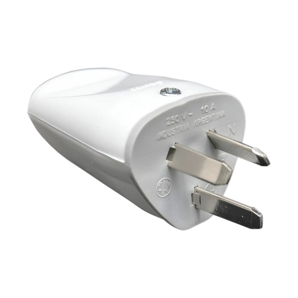 Ficha Macho 10A Axial 2 Patas + Tierra Blanco/Gris Exultt