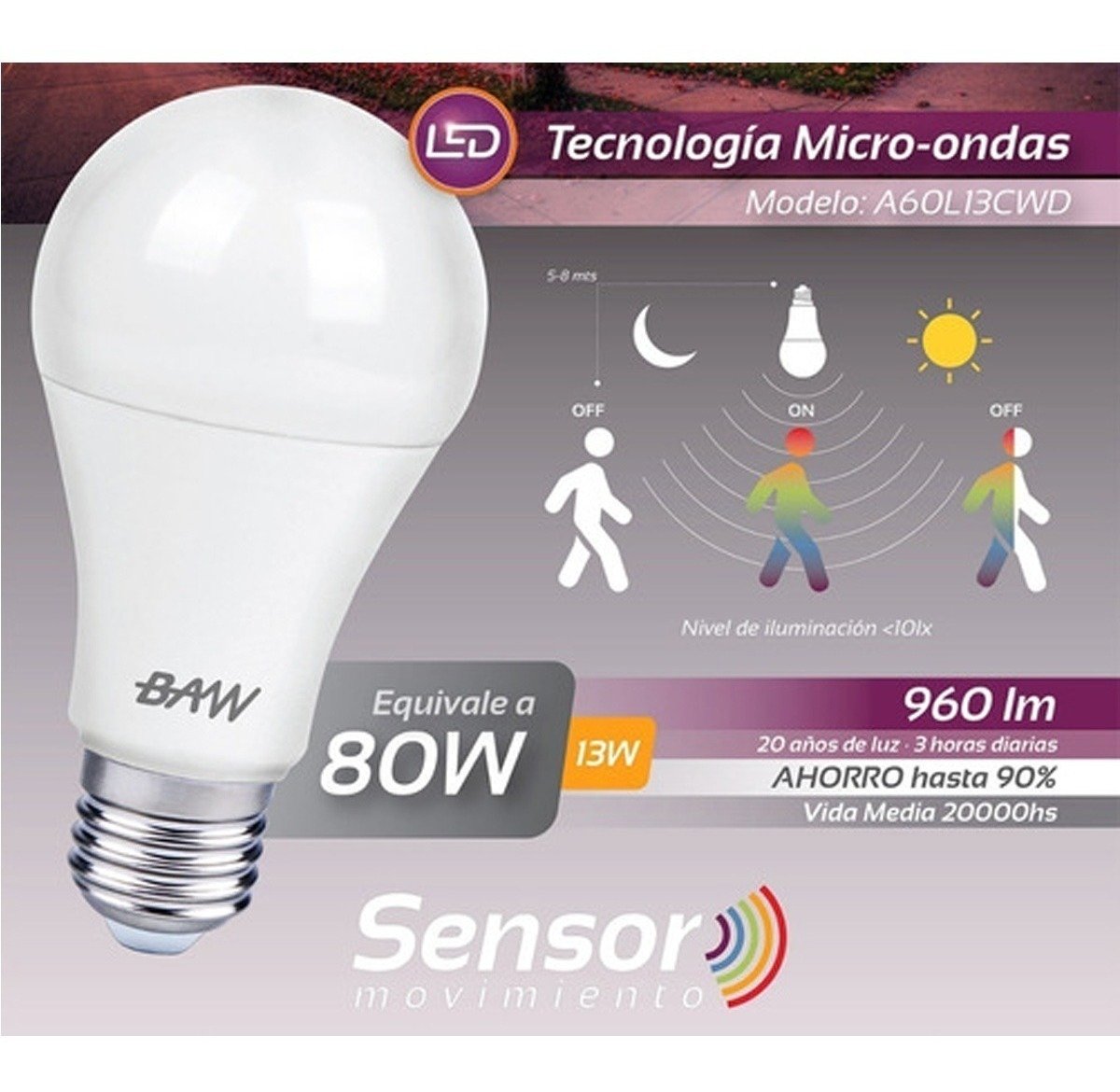 Lampara Led Sensor Movimiento 13w Luz Fria 6500 K