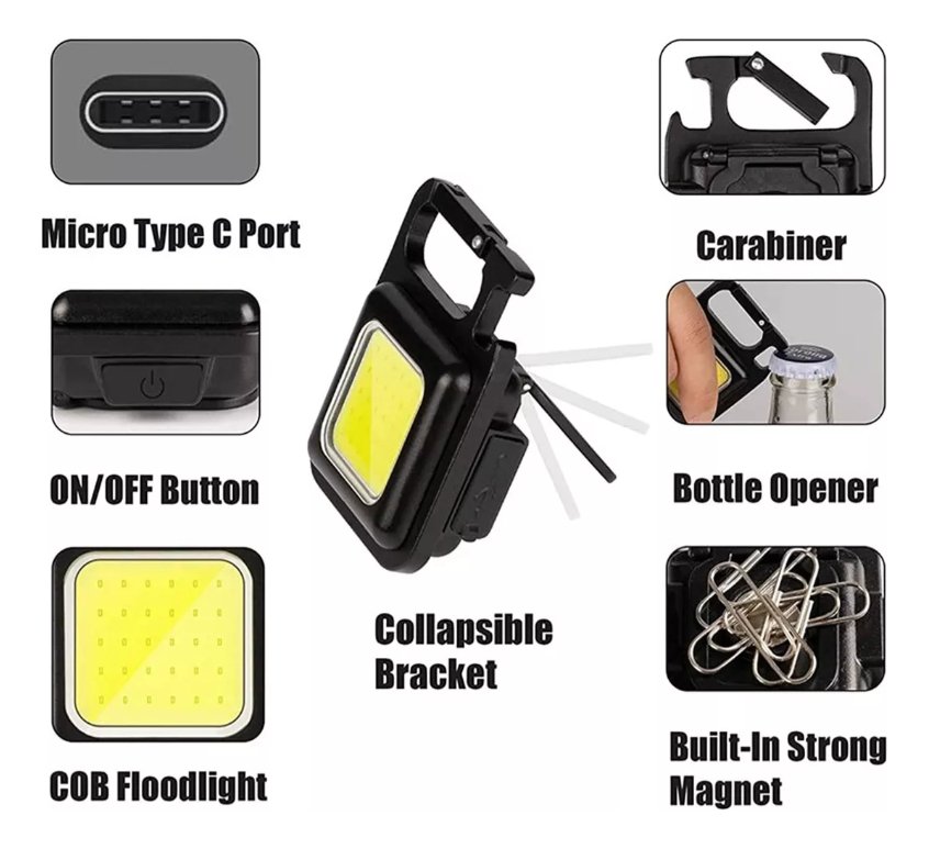 Mini Linterna Cob Led Recargable Usb Iman Llavero 3 Efectos