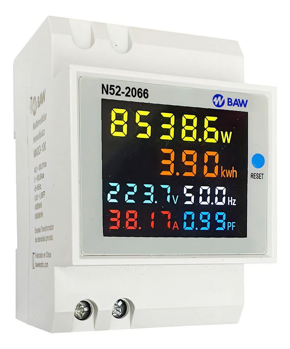 Mejora la gestion de tu consumo electrico con el Multimedidor Monofasico Baw N52-2066, diseñado para registrar con precision la energia activa. Equipado con funcion de reset, permite un reinicio facil del contador para un monitoreo mas efectivo. Ideal para aplicaciones residenciales y pequeñas empresas, su instalacion rapida y su alta fiabilidad lo hacen una opcion imprescindible. Controla y optimiza tu consumo energetico hoy mismo!