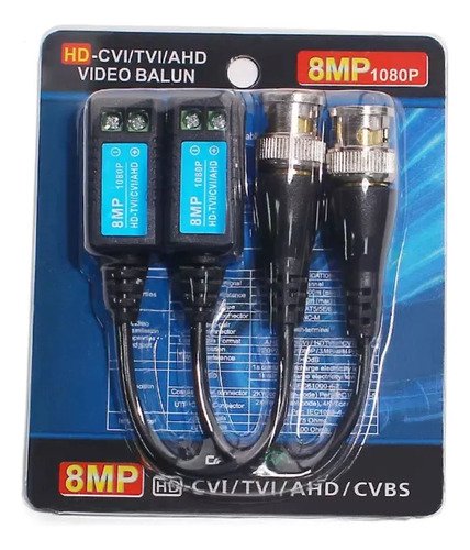 Par Balun Pasivo Bonera Tornillo 2-8mp Hd-cvi/tvi/ahd Negro