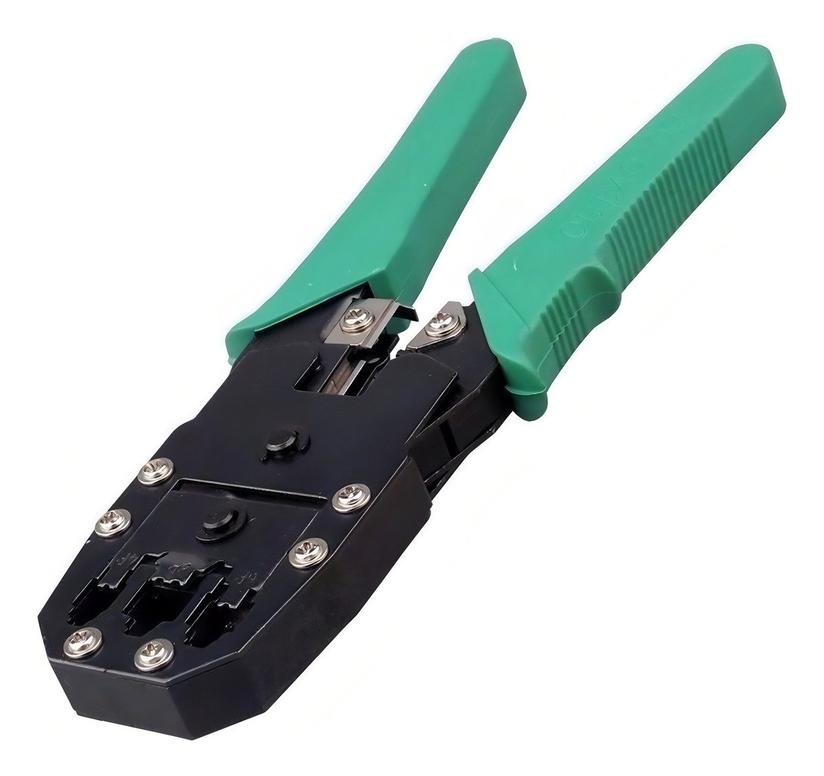 La pinza profesional crimpeadora es una herramienta esencial para trabajos de telecomunicaciones y redes. Su diseño robusto y preciso garantiza conexiones de calidad y un uso duradero en todo tipo de instalaciones.