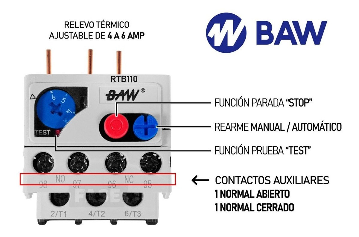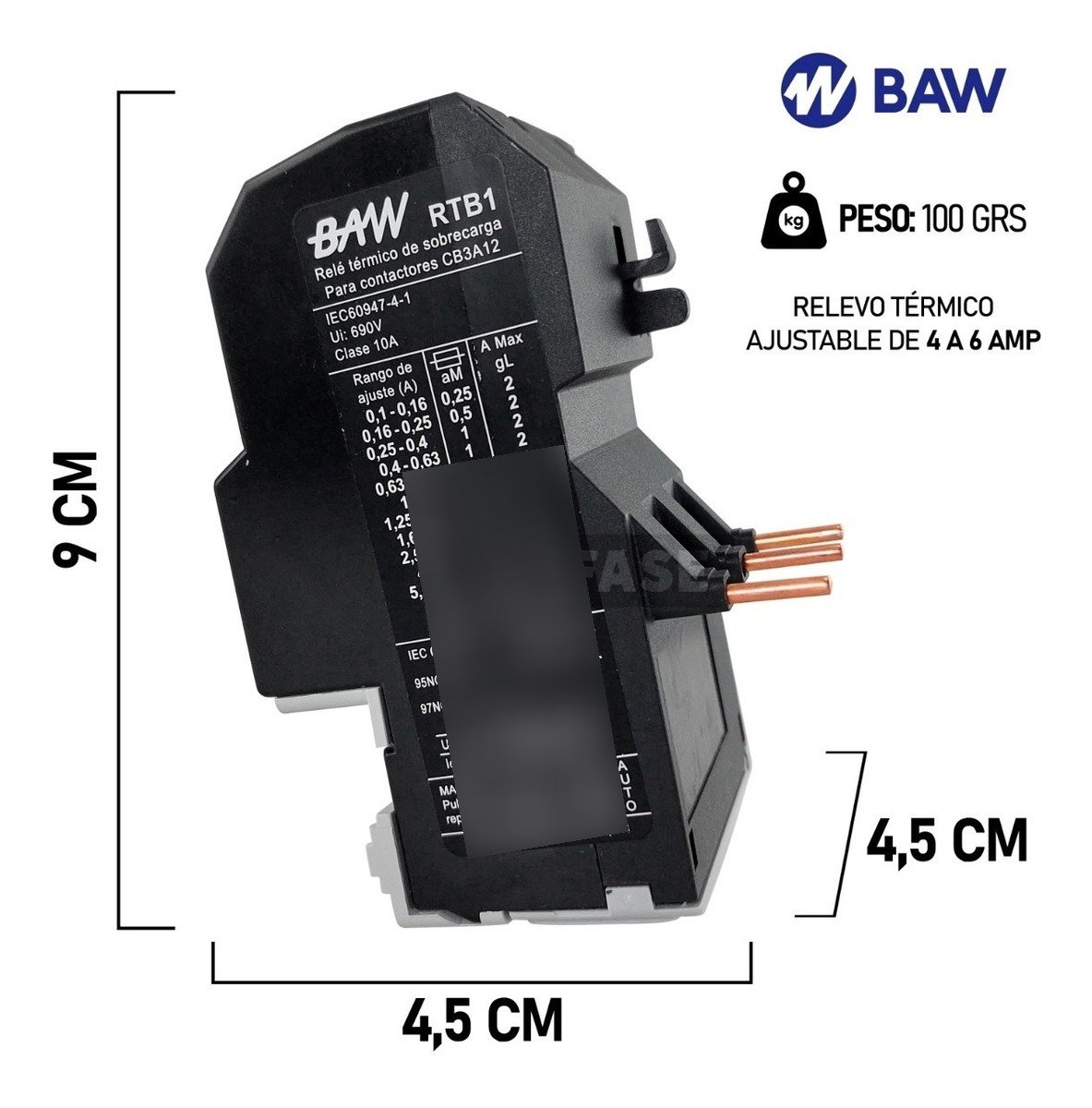 El Relevo Térmico BAW Tripolar 4 A 6 Amp Rele Contactor RTB110 es un componente esencial para cualquier sistema eléctrico que requiera un control eficiente y seguro. Este relé de la reconocida marca BAW, es un dispositivo de alta calidad y confiabilidad, diseñado para proteger tus equipos y sistemas eléctricos de sobrecargas y cortocircuitos. Con su modelo RTB110, este relé tripolar ofrece una capacidad de conmutación de 4 a 6 amperios, lo que lo hace ideal para una amplia gama de aplicaciones. Además, su categoría de utilización AC3 asegura su rendimiento en condiciones de trabajo exigentes. Este producto es una inversión inteligente para mantener la seguridad y la eficiencia de tus sistemas eléctricos.