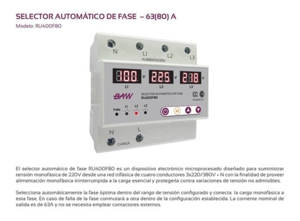 El selector automatico de fase RU400F80 es un dispositivo electronico microprocesado diseñado para suministrar