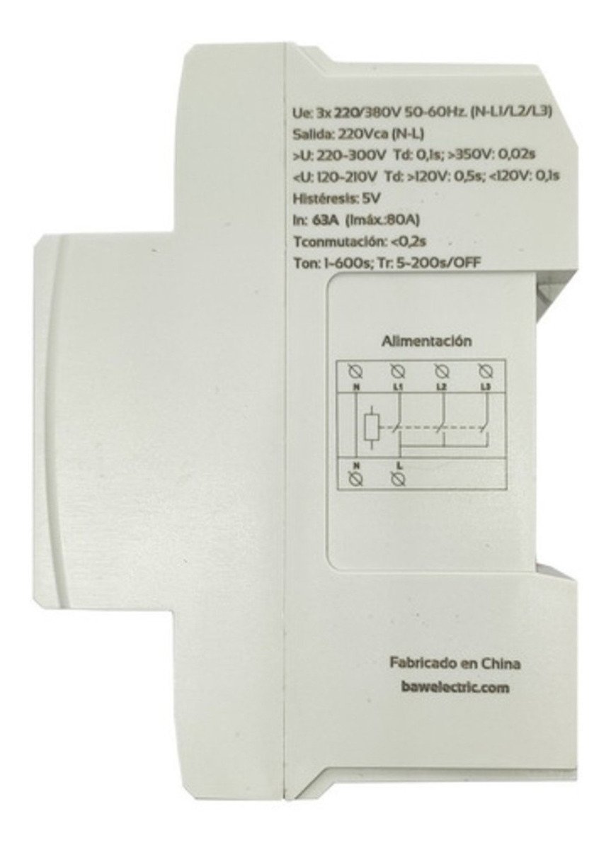 Selecciona automaticamente la fase optima dentro del rango de tension configurado y conecta la carga monofasica aesta fase. En caso de falla de la fase conmutara a otra dentro de la configuracion establecida. La corriente nominal desalida es de 63A y no se necesita emplear contactores externos.