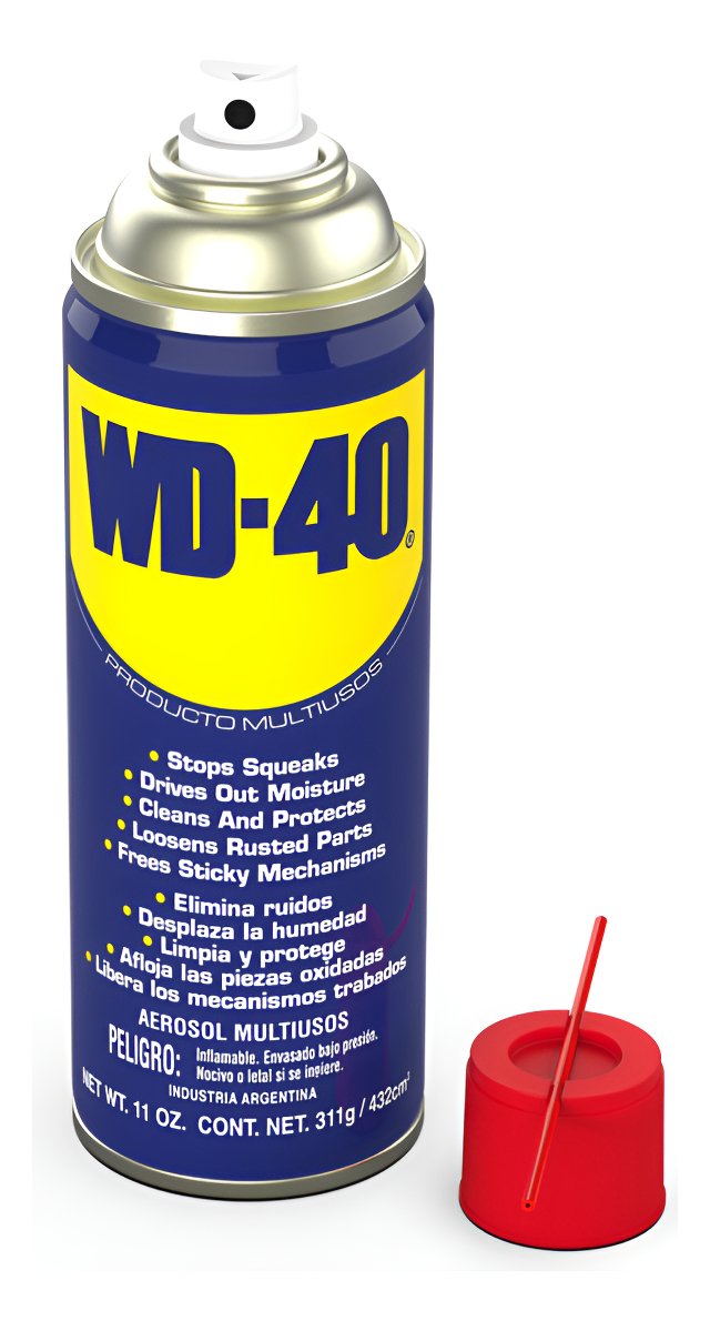WD-40® Producto Multi-Uso protege el metal contra el óxido y la corrosión, libera piezas atascadas, desplaza la humedad y lubrica prácticamente todo. Incluso elimina grasa, mugre y suciedad de la mayoría de las superficies.