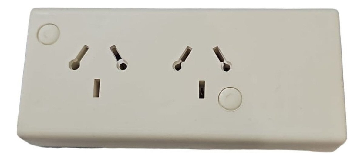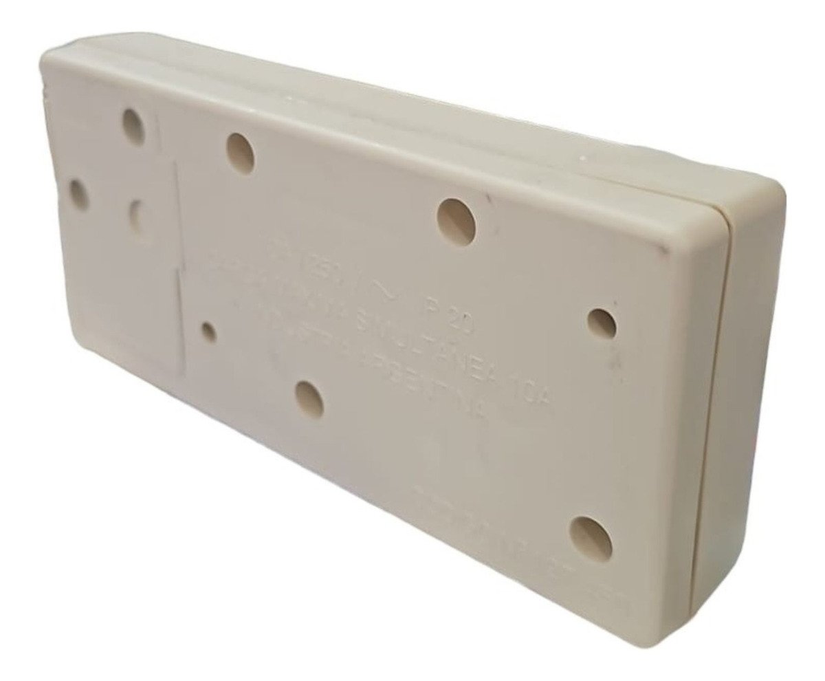 Tomacorriente múltiple, de superficie. 2 Tomas. Este producto permite la conexión simultanea de 2 cargas diferentes, carga maxima 250v 10A. Posee dos orificios con tapon para fijar en pared. Se entrega Modelo 127.450.